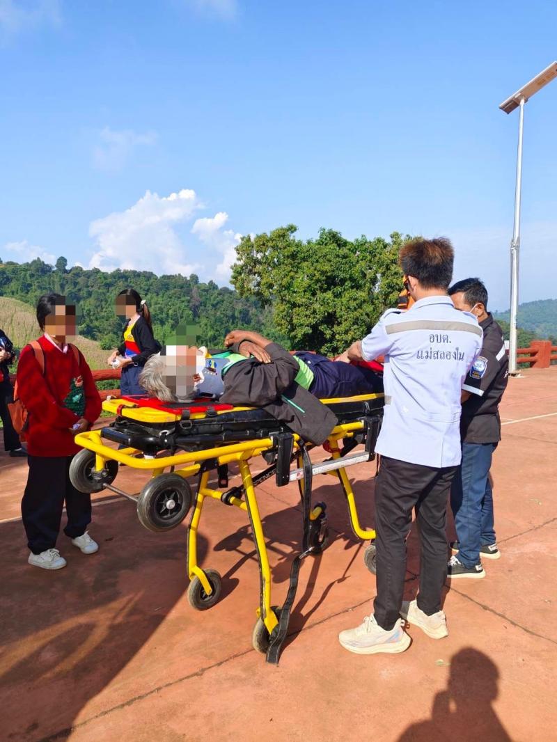 วันที่ 13 พฤศจิกายน 2567 เวลา 08.50 น. ทีมงานกู้ชีพ (EMS) ได้รับแจ้งจากโรงพยาบาลแม่ฟ้าหลวง ให้ออกช่วยเหลืออุบัติเหตุมอเตอร์ไซค์ล้มเอง เจ้าหน้าที่ได้รับช่วงต่อ จาก รพ.สต. สันติคีรี ที่บริเวณบ้านสามแยก (ม.24) ทีมกู้ชีพได้นำผู้ป่วยส่งรักษาต่อโรงพยาบาลแม่ฟ้าหลวงเป็นที่เรียบร้อย