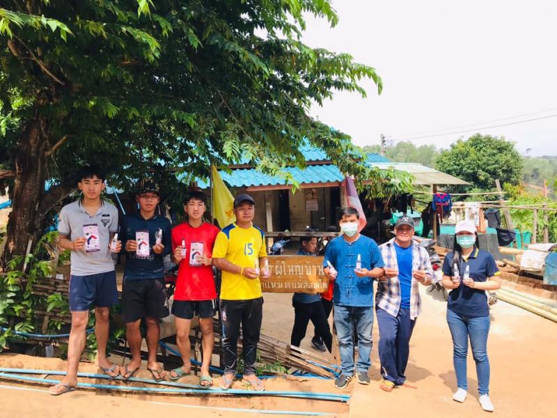ประชาสัมพันธ์ให้ความรู้โดยใช้รถประชาสัมพันธ์ แจกแผ่นพับให้ความรู้ และมอบสเปรย์แอลกอฮอล์ฆ่าเชื้อ 22 พ.ค. 63