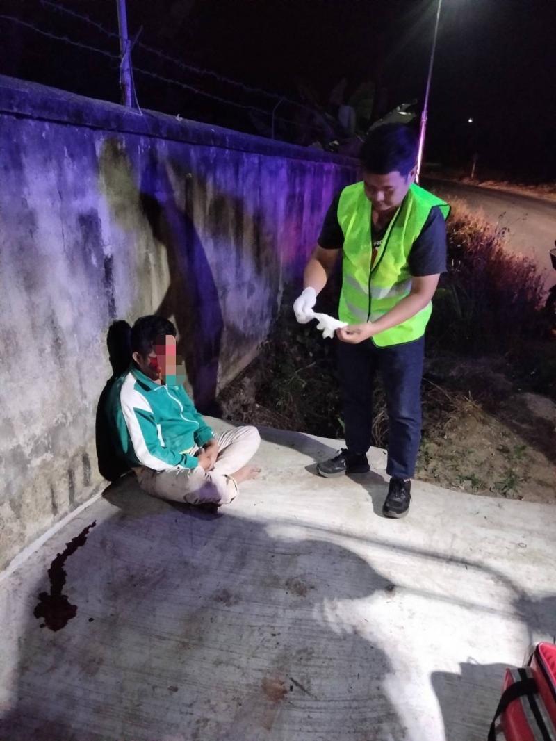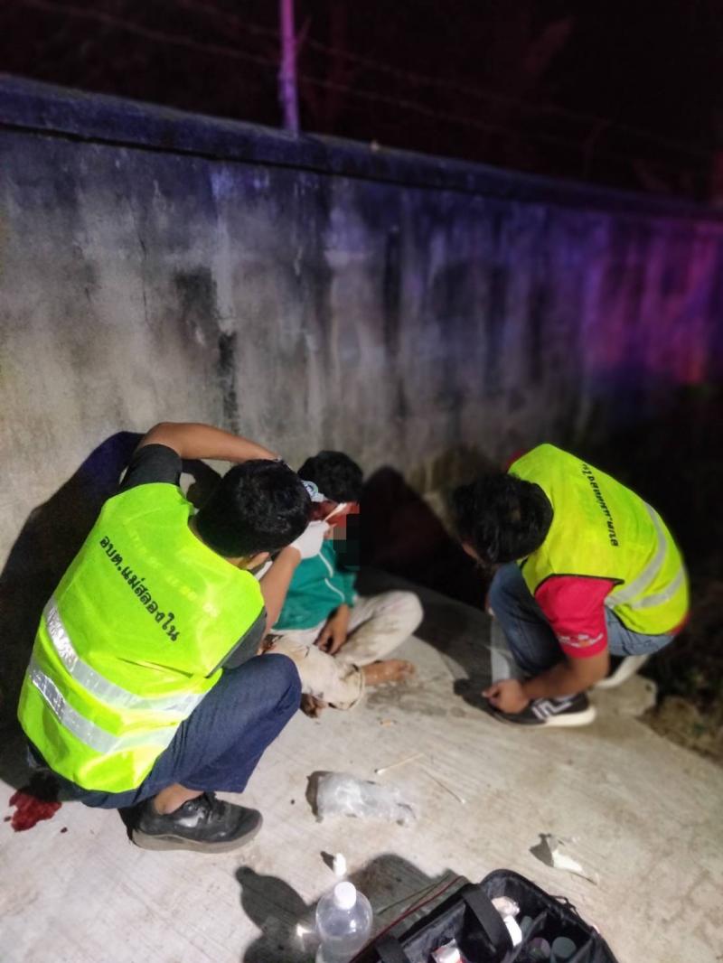 เจ้าหน้าที่กู้ชีพ ออกช่วยเหลืออุบัติเหตุรถจักรยานยนต์ล้มเอง บริเวณบ้านห้วยผึ้ง หมู่ที่ 2