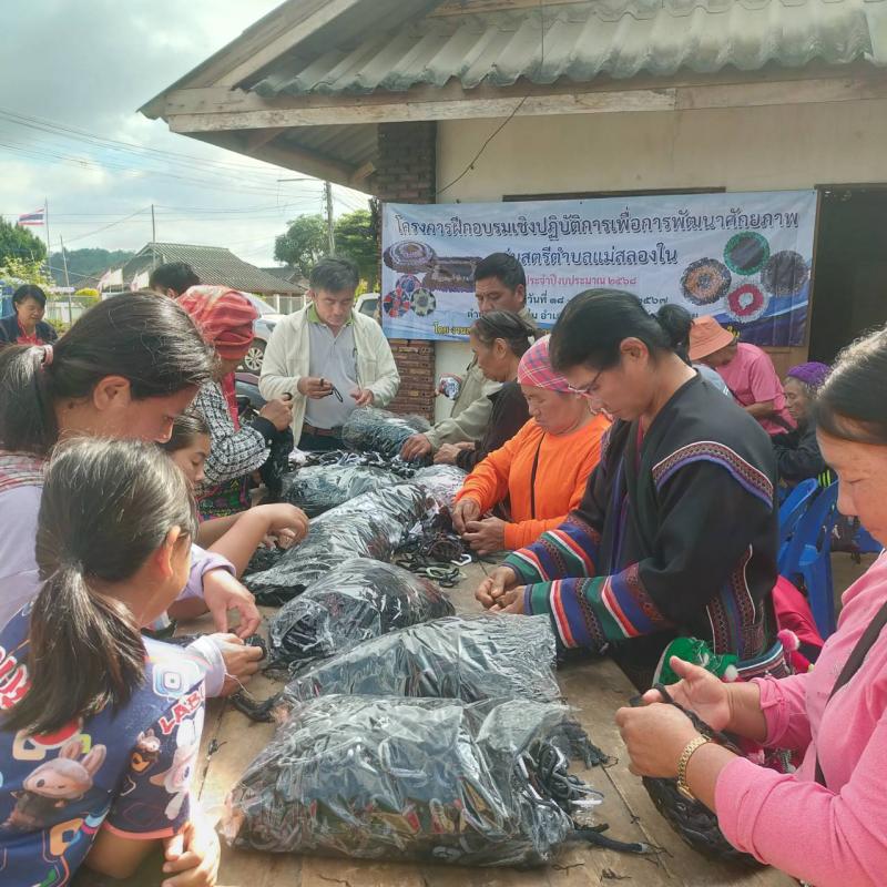 งานสวัสดิการและพัฒนาชุมชนฯ จัดทำโครงการฝึกอบรมเชิงปฏิบัติการเพื่อการพัฒนาศักยภาพสตรีตำบลแม่สลองใน ประจำปีงบประมาณ 2568 (พรมเช็ดเท้า)