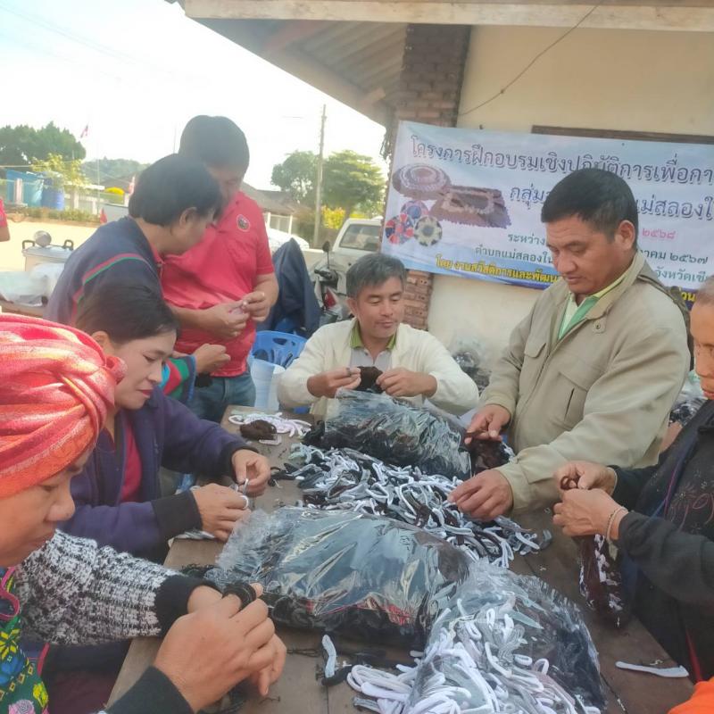 วันที่ 18 - 19 ธันวาคม 2567 งานสวัสดิการและพัฒนาชุมชน ร่วมกับงานป้องกันฯ จัดทำโครงการฝึกอบรมเชิงปฏิบัติการเพื่อการพัฒนาศักยภาพสตรีตำบลแม่สลองใน ประจำปีงบประมาณ 2568 (พรมเช็ดเท้า) ณ (หมู่ที่ 8) บ้านห้วยส้าน และ (หมู่ที่ 20) บ้านนาโต่ เพื่อส่งเสริมการมีอาชีพ หารายได้เสริม ใช้เวลาว่างให้เป็นประโยชน์ โดยมีครูอาสา จาก ศกร.อำเภอแม่ฟ้าหลวง เป็นวิทยากรในครั้งนี้ (ครูแหม่ม และครูกิ่ง)