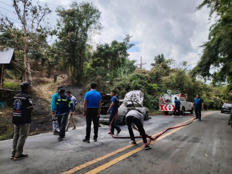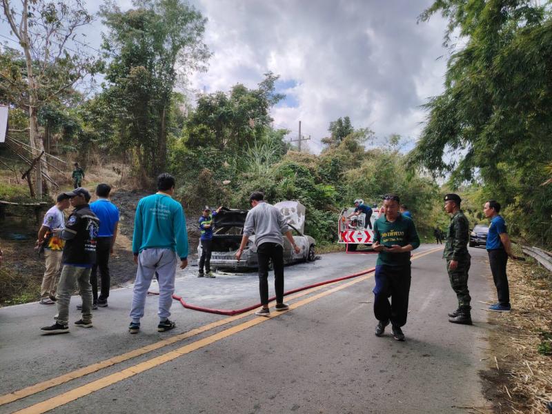 งานป้องกันฯและงานกู้ชีพ อบต.แม่สลองใน ออกช่วยเหลือดับไฟไหม้รถ บริเวณบ้านสามแยก(ทางไปแม่สลองนอก)