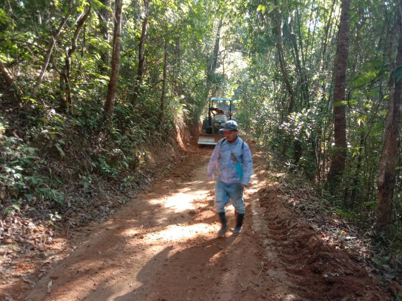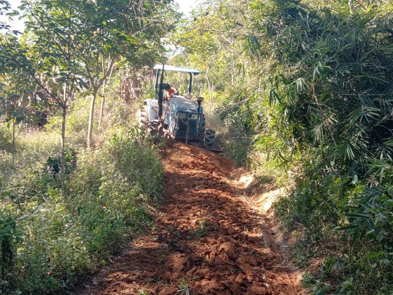 งานป้องกันฯ ลงพื้นที่ปรับถนนทางเข้าการเกษตร บ้านห้วยผึ้ง หมู่ที่ 2