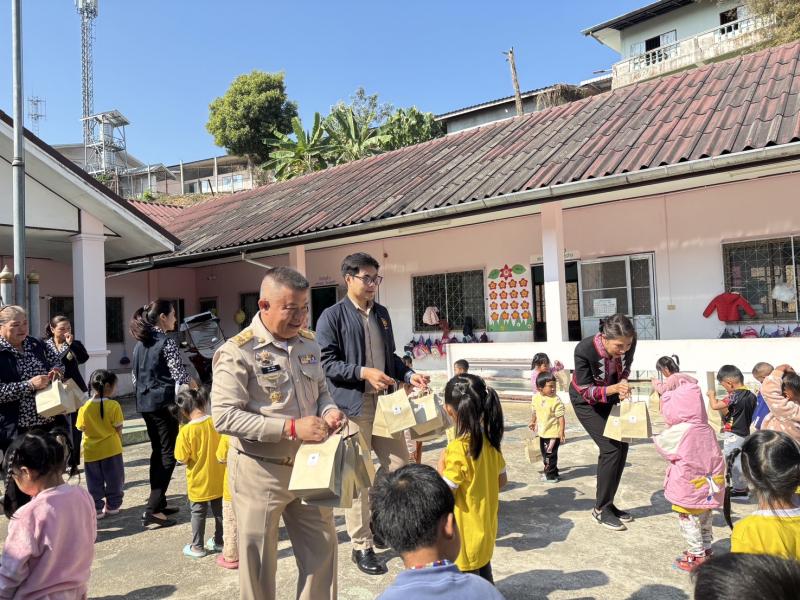 วันที่ 20 มกราคม 2568 นำโดยนายกปิยะเดช เชิงพิทักษ์กุล เจ้าหน้าที่กองการศึกษาฯ และคณะครูศพด.บ้านห้วยผึ้ง ร่วมต้อนรับนายปรีชา ศิรินาม นายอำเภอแม่ฟ้าหลวง พร้อมด้วยนางศินีนาฏ ทองสุข ประธานชมรมแม่บ้านมหาดไทยจังหวัดเชียงราย และสมาชิกเหล่ากาชาดจังหวัดเชียงราย ตรวจเยี่ยมการดำเนินโครงการครอบครัวมหาดไทย ใส่ใจสิ่งแวดล้อม เรื่องการคัดแยกขยะ ทำถังขยะเปียก ลดโลกร้อน ทั้งนี้ได้ตรวจเยี่ยมการดำเนินโครงการส่งเสริมการสร้างสุขอนามัยให้แก่เด็กและแม่ฯ โดยตรวจเยี่ยมการจัดอาหารกลางวันให้เด็กนักเรียน และแจกของขวัญให้เด็ก ณ ศูนย์พัฒนาเด็กเล็กบ้านห้วยผึ้ง หมู่ 2 ตำบลแม่สลองใน