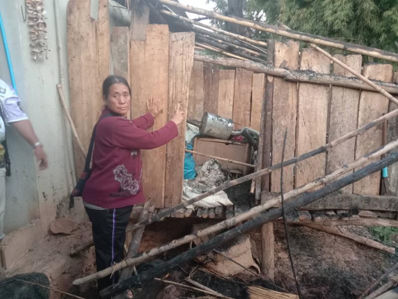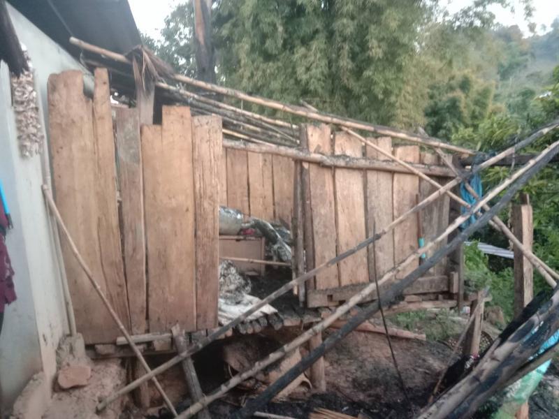 งานป้องกันฯ ลงพื้นที่สำรวจเหตุไฟไหม้ เมื่อเวลา 14.00 น. เกิดเหตุไฟไหม้ห้องเก็บ บ้านห้วยหยวกป่าโซ