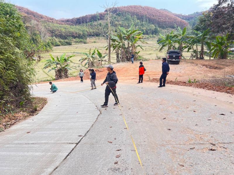 ทีมงานกองช่างและคณะกรรมการตรวจรับงานจ้าง ร่วมตรวจรับงานจ้างโครงการก่อสร้างถนนคอนกรีตเสริมเหล็ก บ้านมอล่อง