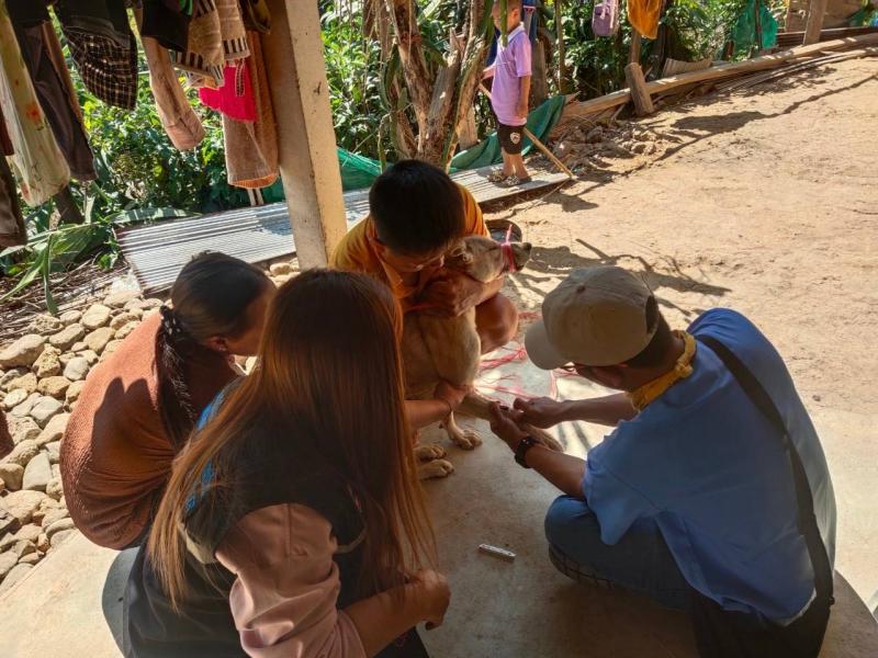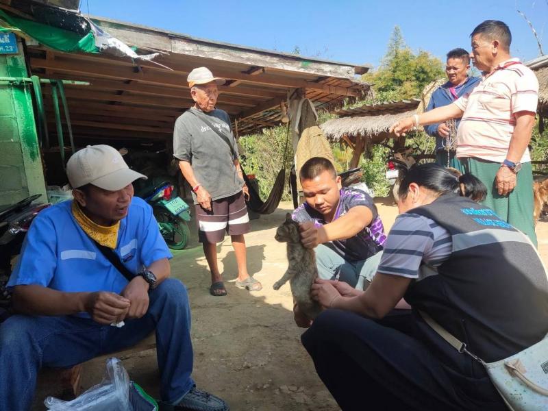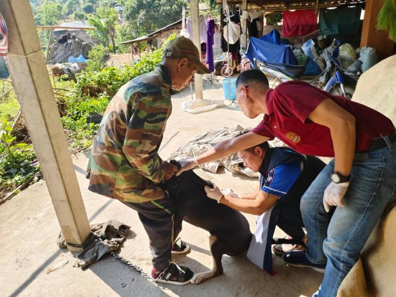 ฝ่ายบริหารงานสาธารณสุข ร่วมกับปศุสัตว์อำเภอแม่ฟ้าหลวง ลงพื้นที่ฉีดวัคซีนป้องกันโรคพิษสุนัขบ้าในสุนัขและแมว บ้านสันมะเค็ด