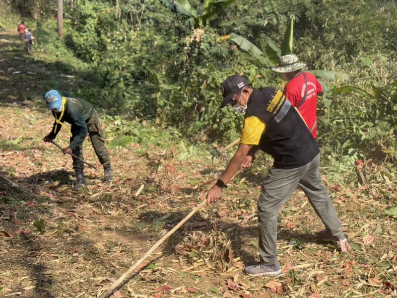 วันที่ 17 กุมภาพันธ์ 2568 นายสมชาย ดวงติ๊บ รองนายกองค์การบริหารส่วนตำบลแม่สลองใน ร่วมกับงานป้องกันและบรรเทาสาธารณภัยและ งานส่งเสริมการเกษตร และทหาร พัฒนา (กอ) เข้าร่วมโครงการป้องกันและแก้ไขปัญหาไฟป่าและหมอกควัน (แนวกันไฟ) โดยร่วมกับประชาชนบ้านอาโต่ (พะน้อย) ม.12 ได้จัดทำแนวกันไฟบริเวณป่าชุมชนหมู่บ้าน