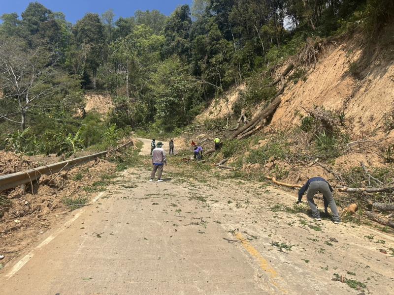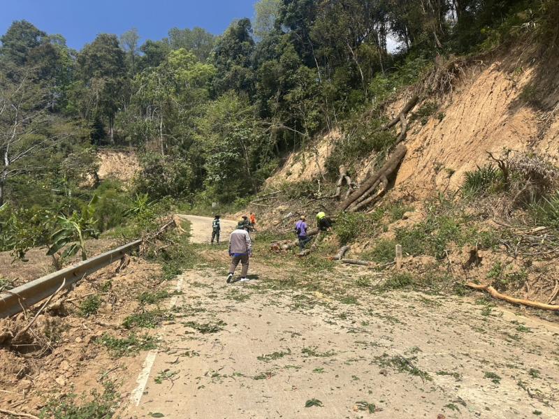 วันที่ 20 กุมภาพันธ์ 2568 ทีมงานป้องกันและบรรเทาสาธารณภัย ร่วมกับงานกองช่าง อบต.แม่สลองใน ลงพื้นที่ตัดต้นไม้ที่ บ้านหัวแม่คำ หมู่ที่ 4 ตำบลแม่สลองใน เพื่อป้องกันอันตราย เนื่องจากสถานการณ์ดินโคลนถล่มที่ผ่านมา ทำให้เกิดดินสไลด์ อาจทำให้ต้นไม้โคล่นล้มลงมาได้ทุกเมื่อ เจ้าหน้าที่ได้ทำการตัดต้นไม้ออกเรียบร้อยแล้ว