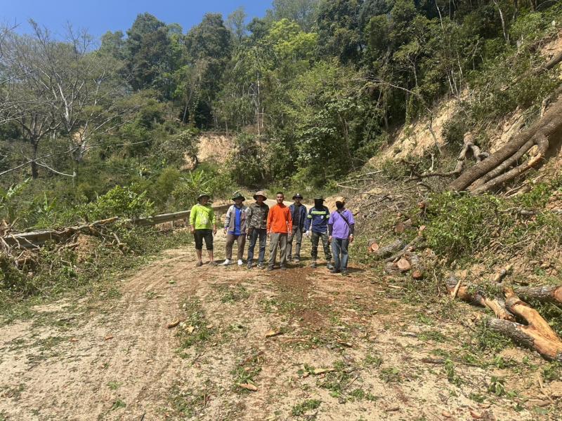 งานป้องกันร่วมกับงานกองช่าง ลงพื้นที่ตัดต้นไม้ ที่บ้านหัวแม่คำ