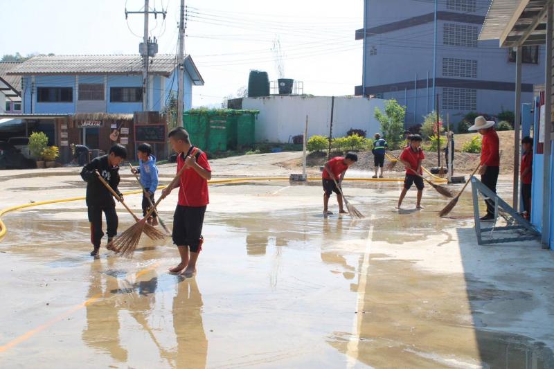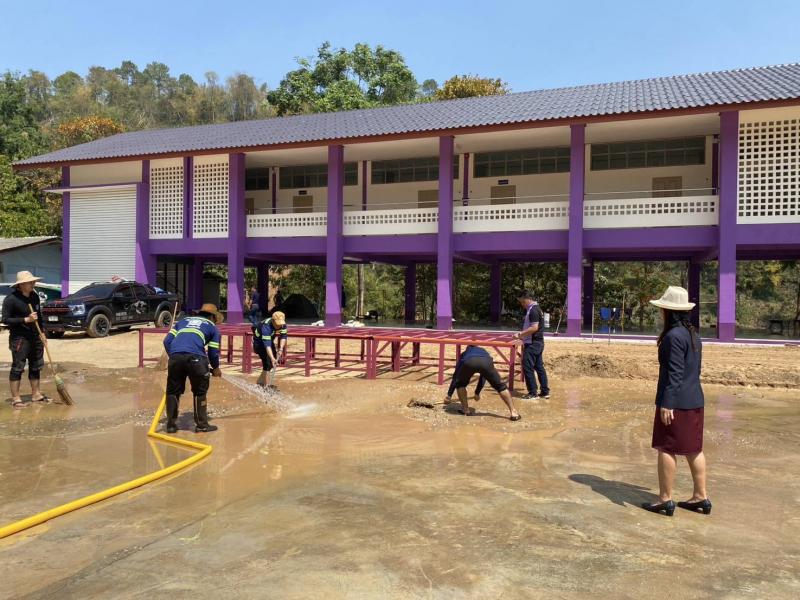 งานป้องกันฯ ออกบริการล้างลานกิจกรรม โรงเรียน ตชด.นาโต่