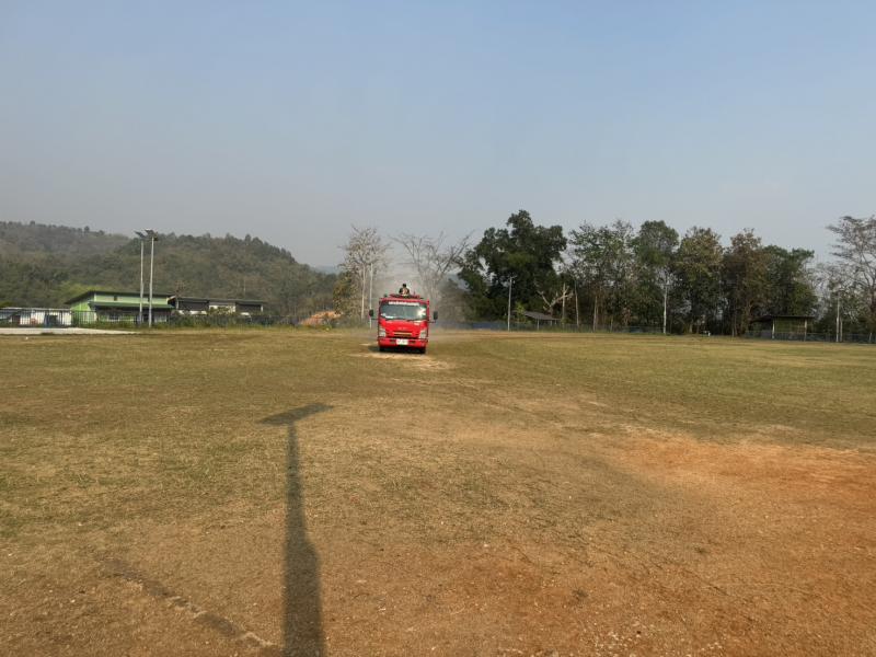 งานป้องกันและบรรเทาสาธารณภัย ได้รับมอบหมายหน้าที่จากรองนายกสมชาย ดวงติ๊บ ให้นำรถบรรทุกน้ำออกพ่นละอองน้ำ เพื่อลดฝุ่น pm 2.5 บริเวณสนามกีฬากลางตำบลแม่สลองใน และพื้นที่ใกล้เคียง
