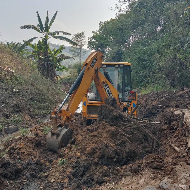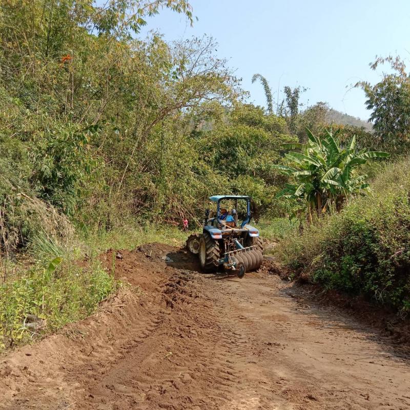 งานป้องกันฯ ได้รับมอบหมายหน้าที่จากรองนายกสมชาย ดวงติ๊บ ให้นำรถไถและรถเจซีบีลงพื้นที่ปรับถนนทางเข้าการเกษตรบ้านนาโต่
