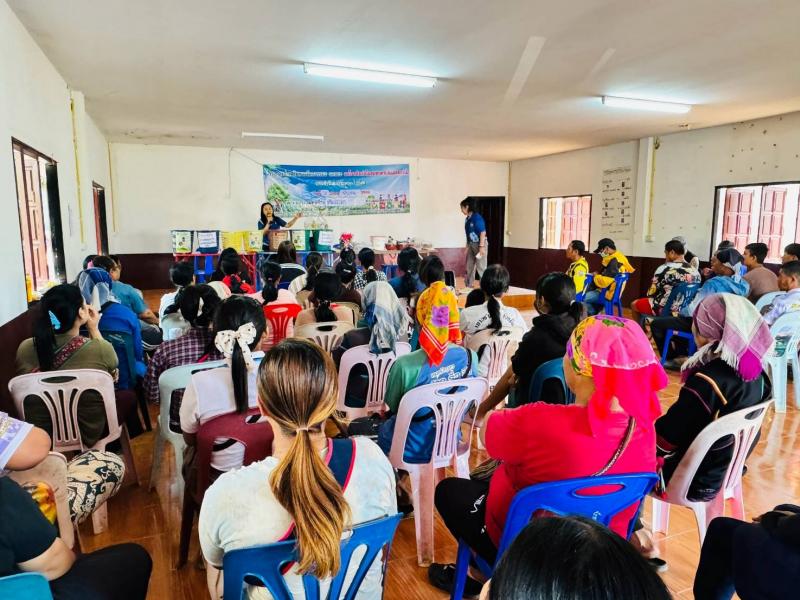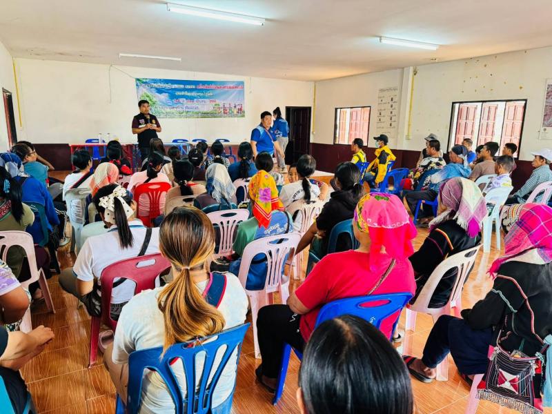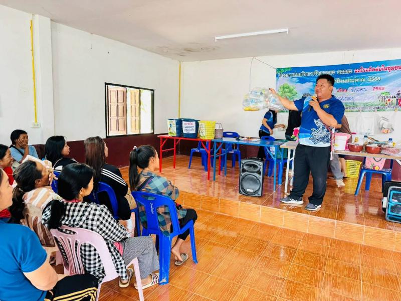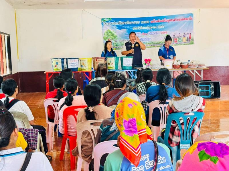 ฝ่ายบริหารงานสาธารณสุข ร่วมกับชมรมกำนันผู้ใหญ่บ้านตำบลแม่สลองใน อบรมให้ความรู้เรื่องการคัดแยกขยะ/ประชาคม บ้านต้นม่วง