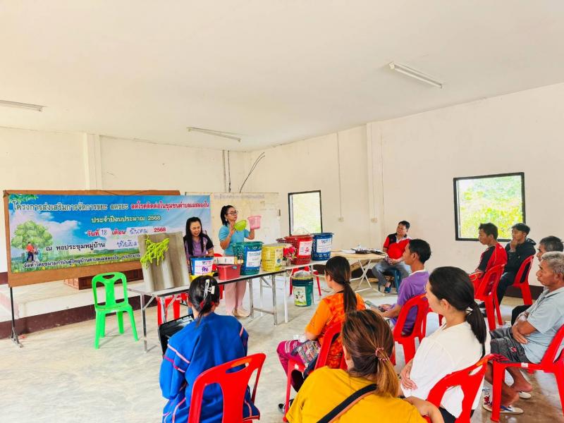 วันที่ 18 มีนาคม 2568 ฝ่ายบริหารงานสาธารณสุข สำนักปลัด ร่วมกับชมรม กำนันผู้ใหญ่บ้านตำบลแม่สลองใน อบรมให้ความรู้เรื่องการคัดแยกขยะ/ประชาคม ภายใต้โครงการส่งเสริมการจัดการขยะ ลดขยะ ลดโรคติดต่อในชุมชนตำบลแม่สลองใน ณ หอประชุมบ้านห้วยโย หมู่ที่ 17 ตำบลแม่สลองใน