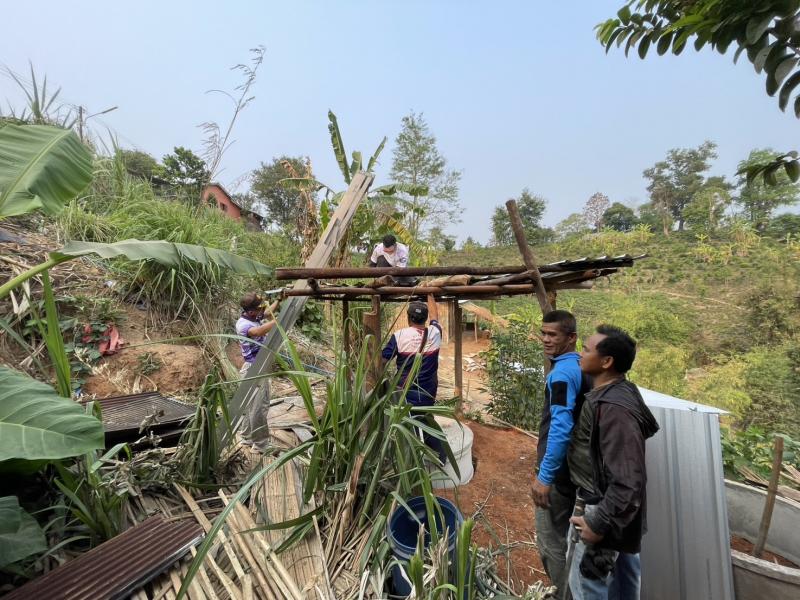 รองสมชาย ดวงติ๊บ ออกติดตามและร่วมด้วยช่วยกันสร้างบ้านให้กับผู้ยากไร้บ้านเล่าลิ่ว หมู่ที่ 14
