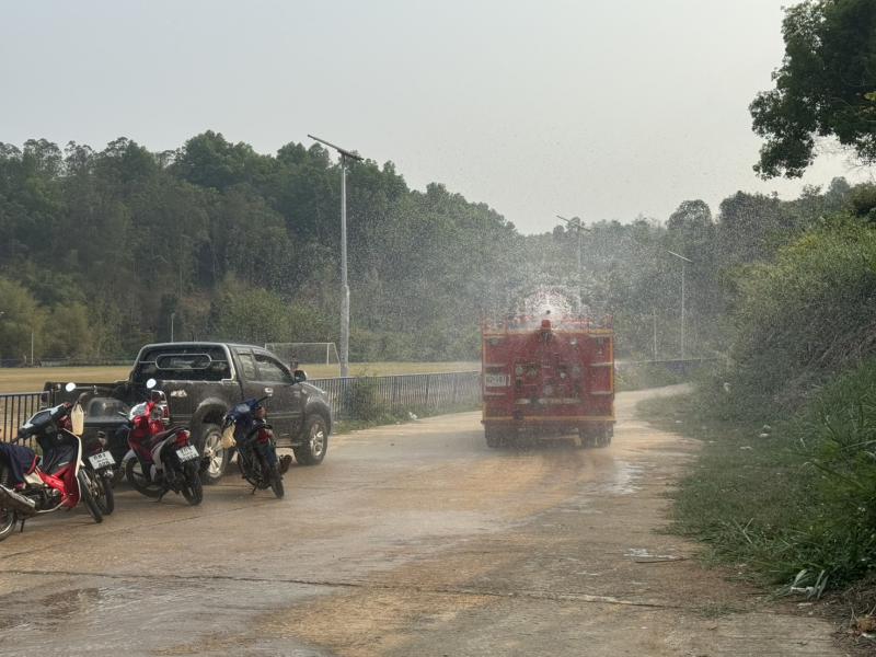 วันที่ 21 - 22 มีนาคม 2568 งานป้องกันและบรรเทาสาธารณภัย อบต.แม่สลองใน ได้รับมอบหมายหน้าที่จากรองนายกสมชาย ดวงติ๊บ ให้นำรถบรรทุกน้ำออกพ่นละอองน้ำ เพื่อลดฝุ่น pm 2.5 บริเวณสนามกีฬากลางตำบลแม่สลองใน และพื้นที่ใกล้เคียง