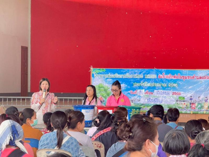 วันที่ 8 เมษายน 2568 ฝ่ายบริหารงานสาธารณสุข สำนักปลัด ร่วมกับชมรม กำนันผู้ใหญ่บ้านตำบลแม่สลองใน ลงพื้นที่อบรมให้ความรู้เรื่องการคัดแยกขยะ/ประชาคม ภายใต้โครงการส่งเสริมการจัดการขยะ ลดขยะ ลดโรคติดต่อในชุมชนตำบลแม่สลองใน ณ หอประชุมบ้านห้วยผึ้ง (หมู่ที่ 2)