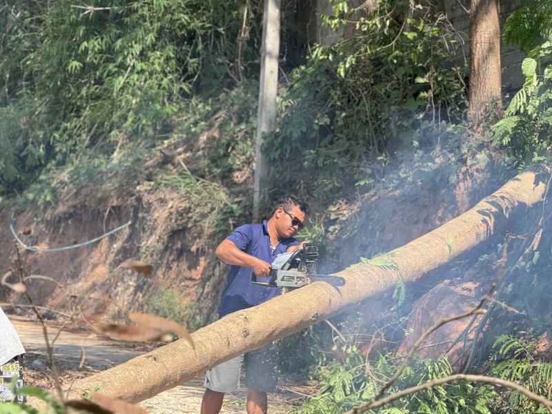 วันที่ 19 เมษายน 2568 ทีมงานป้องกันฯ ได้รับมอบหมายหน้าที่จากนาย สมชาย ดวงติ๊บ รองนายกองค์การบริหารส่วนตำบลแม่สลองใน ว่ามีต้นไม้ ล้มขวางถนน หลังวัดบ้านหินแตก ม.1 ขณะนี้เจ้าหน้าที่ป้องกันฯ ได้ตัดต้นไม้สามารถ สัญจรไปมาได้ปกติ