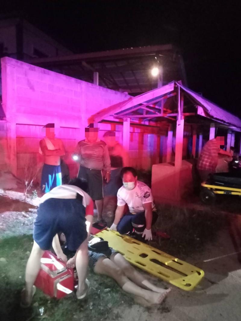 งานกู้ชีพออกช่วยเหลืออุบัติเหตุรถจักรยานยนต์ล้มเองบริเวณบ้านจะคำน้อย