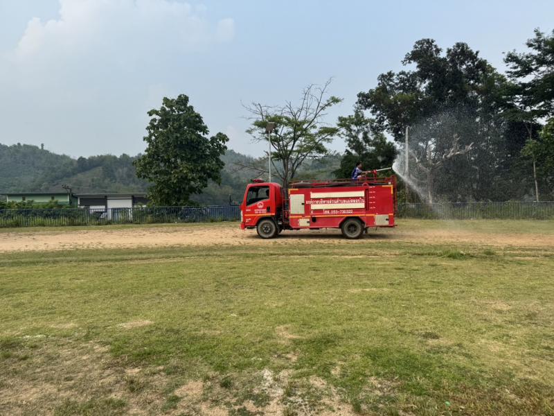 วันที่ 26 - 27 เมษายน 2568 เจ้าหน้าที่ป้องกันและบรรเทาสาธารณภัย อบต.แม่สลองใน ออกพ่นละอองน้ำ เพื่อลดฝุ่น บริเวณสนามกีฬากลางตำบลแม่สลองใน และพื้นที่ใกล้เคียง