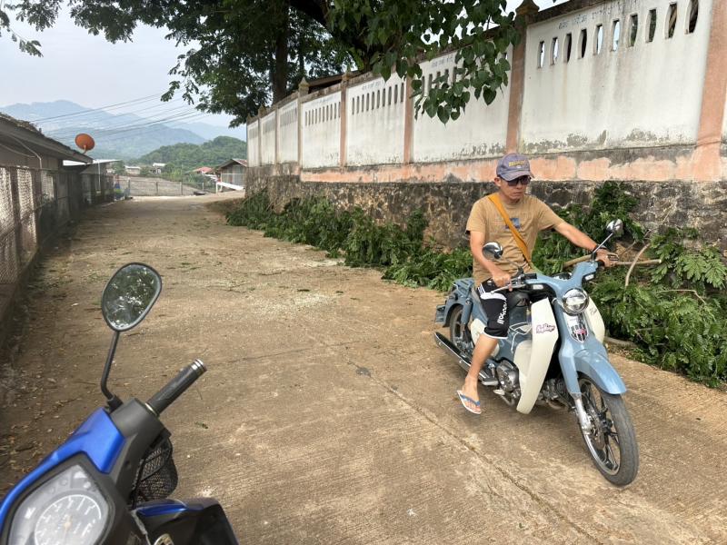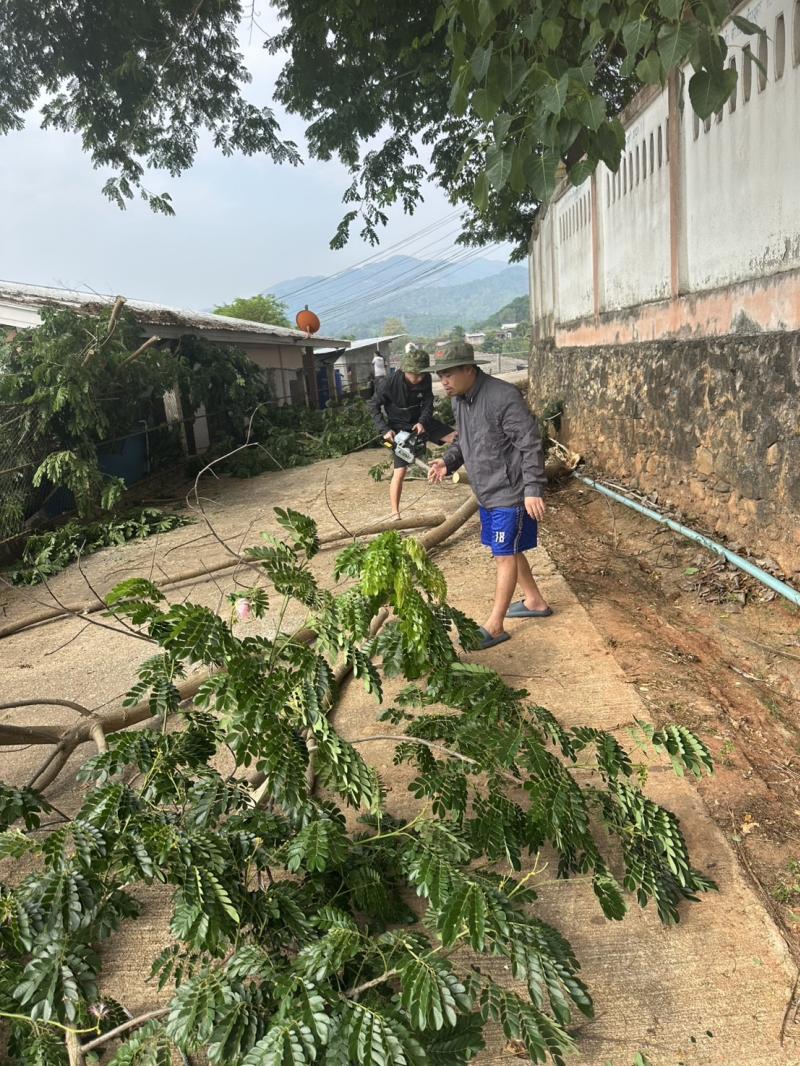 งานป้องกันฯ ได้รับมอบหมายจากรองนายกสมชาย ดวงติ๊บ ให้ลงพื้นที่ตัดกิ่งไม้ล้มทับศูนย์พัฒนาเด็กเล็กบ้านหินแตก
