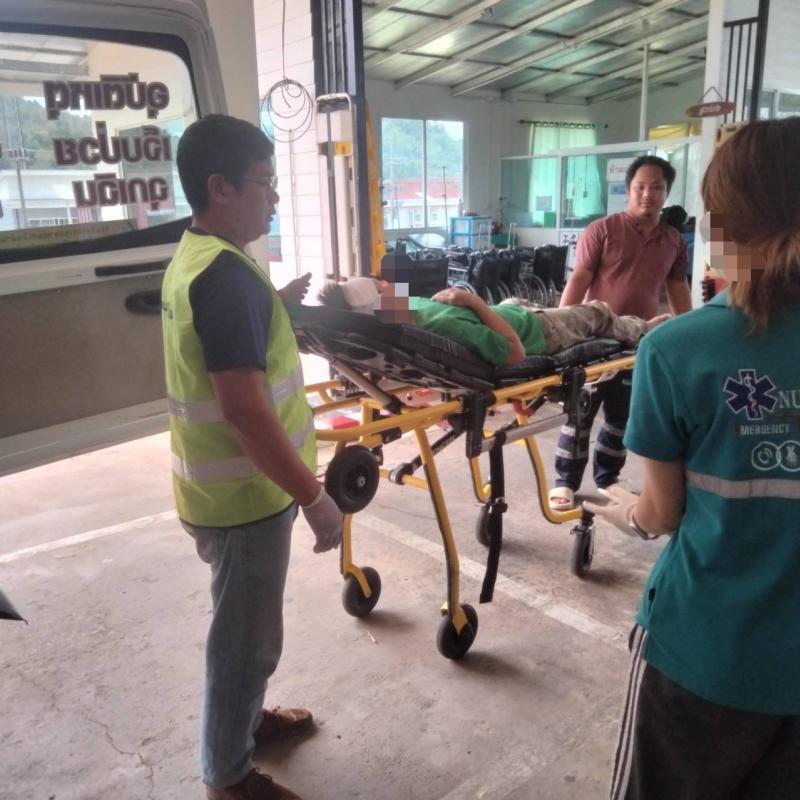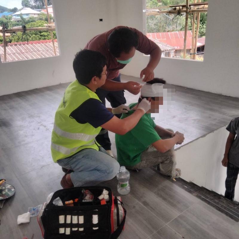 งานกู้ชีพ ออกช่วยเหลืออุบัติเหตุคนงานก่อสร้างตกบันได บริเวณบ้านห้วยผึ้ง