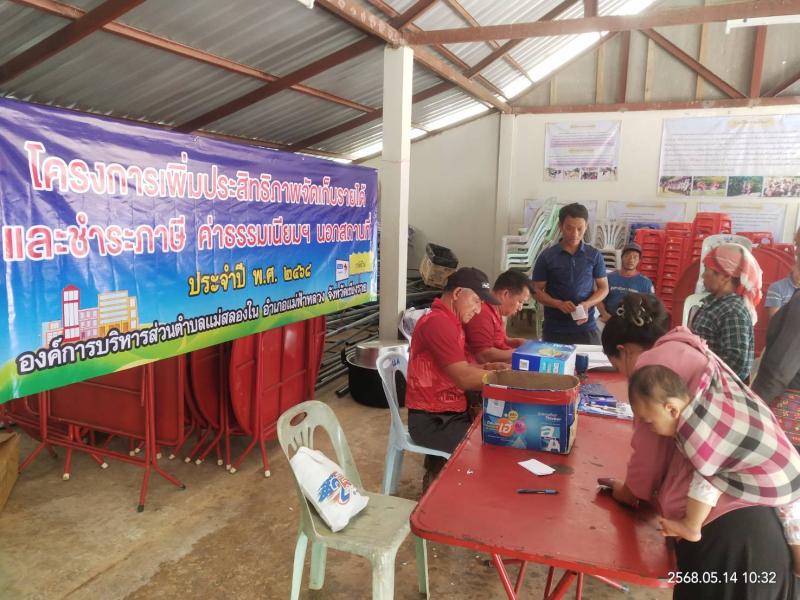 วันอังคารที่ 14 พฤษภาคม 2568 งานพัฒนาจัดเก็บรายได้ อบต.แม่สลองใน ออกบริการเก็บภาษีที่ดินและสิ่งปลูกสร้าง ค่าขยะมูลฝอย นอกสถานที่ ณ (หมู่ที่ 4) บ้านหัวแม่คำ