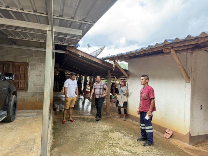 นายปิยะเดช เชิงพิทักษ์กุล นายกองค์การบริหารส่วนตำบลแม่สลองใน พร้อมด้วยงานป้องกันฯ ลงพื้นที่มอบ กระเบื้อง ให้กับผู้ที่ได้รับผลกระทบจากพายุที่ผ่านมา ทำให้บ้านเรือนของประชาชน ในพื้นที่ บริเวณบ้านแม่แสลป
