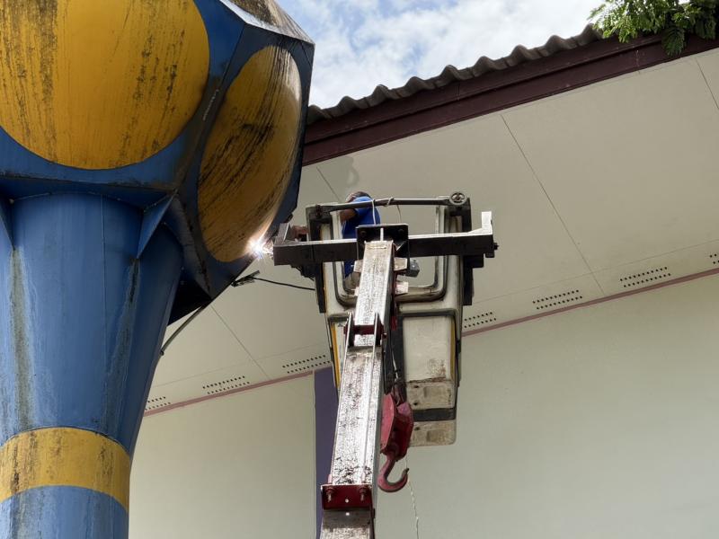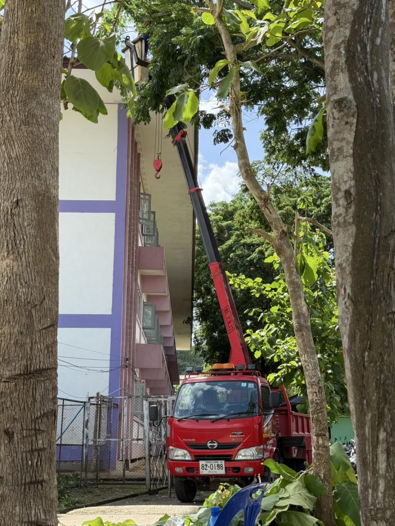 วันที่ 22 พฤษภาคม 2568 เจ้าหน้าที่กองช่างได้ออกปฏิบัติหน้าที่ ตามหนังสือขอความอนุเคราะห์ รถกระเช้าและบุคลากรในการขับ ในการซ่อมแซมแท็งค์เก็บน้ำดื่ม ซึ่งเป็นแท็งค์น้ำที่ใช้ในการเก็บน้ำอุปโภค บริโภคของนักเรียน คณะครูและบุคลากรทางการศึกษาในโรงเรียนบ้านห้วยผึ้ง เนื่องจากเกิดการชำรุดและบริเวณที่จะทำการซ่อมแชมมีความสูงไม่สามารถดำเนินการได้นั้น