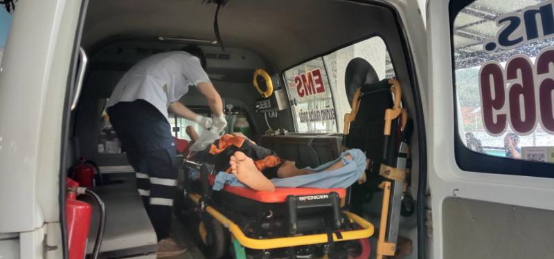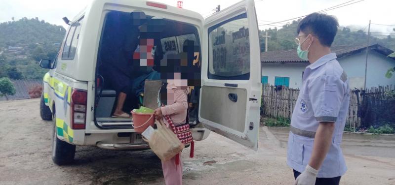 เจ้าหน้าที่กู้ชีพ อบต.แม่สลองใน ออกบริการตามแบบคำร้องขอรับบริการรถพยาบาลฉุกเฉินกู้ชีพ (กรณีผู้ป่วยติดเตียง) จากโรงพยาบาลแม่ฟ้าหลวง ในนำส่งบ้านสันมะเค็ด (ม.23)