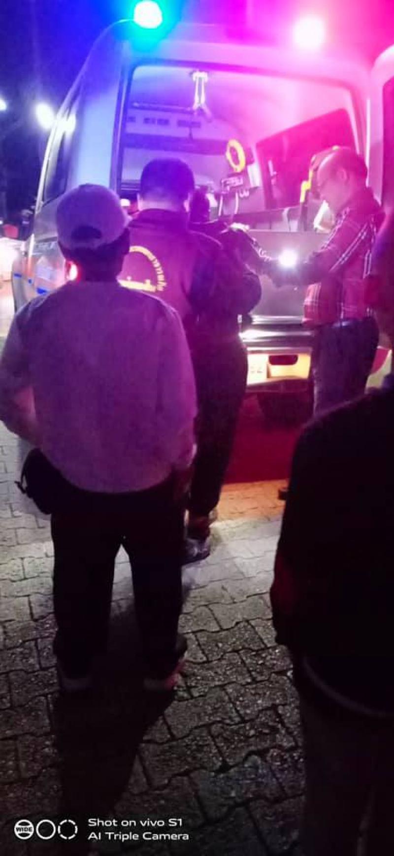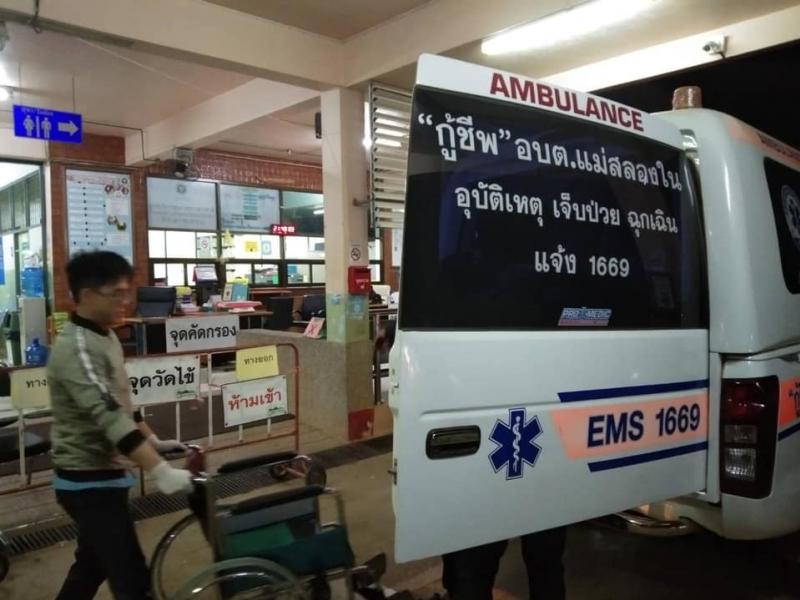 กู้ชีพ อบต.แม่สลองใน รับผู้ป่วยบ้านผาเดื่ออุบัติเหตุหกล้มแล้วโดนมีดบาดมีแผลที่ขาและหัวเข่าซ้าย