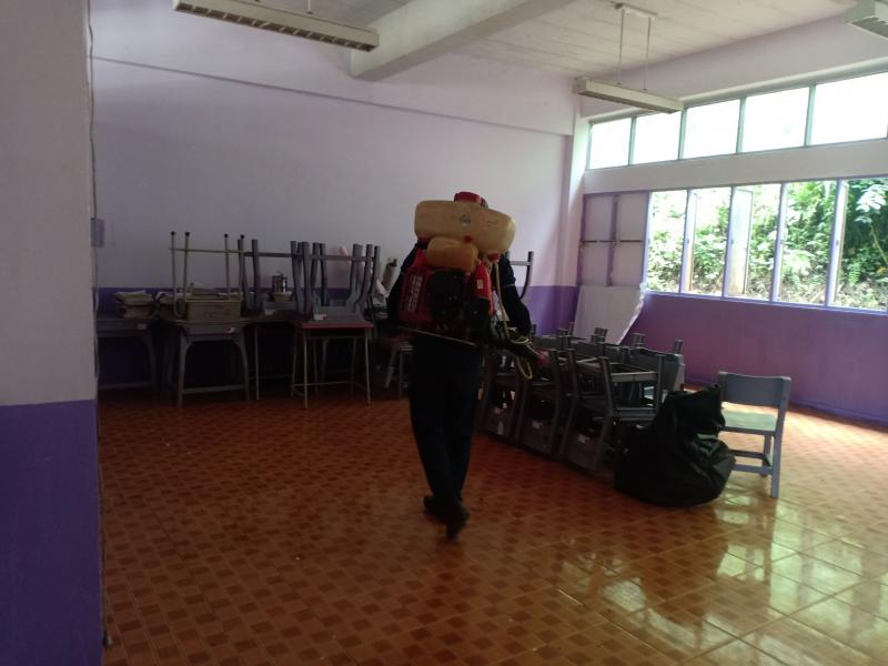 งานสาธารณสุขและงานป้องกันฯ องค์การบริหารส่วนตำบลแม่สลองใน ออกพ่นน้ำยาฆ่าเชื้อ เพื่อป้องการแพร่ระบาดของเชื้อไวรัสโคโรนา2019 และฉีดพ่นละอองฝอยป้องกันโรคไข้เลือดออกภายในสถานศึกษา เตรียมความพร้อมในการเปิดเทอม ณ โรงเรียนชุมชนศึกษาบ้านแม่สะแลป ,โรงเรียนมนตรีวิทยา,โรงเรียนบ้านห้วยผึ้ง,และโรงเรียนเทอดไทย(แผนกมัธยม) |