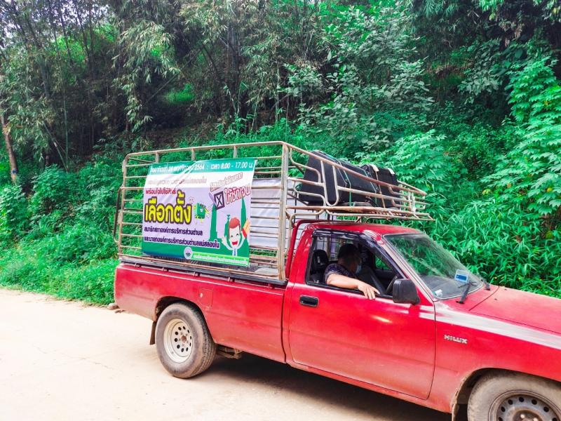 ศูนย์อำนวยการเลือกตั้งองค์การบริหารส่วนตำบลแม่สลองในออกหน่วยประชาสัมพันธ์เคลื่อนที่