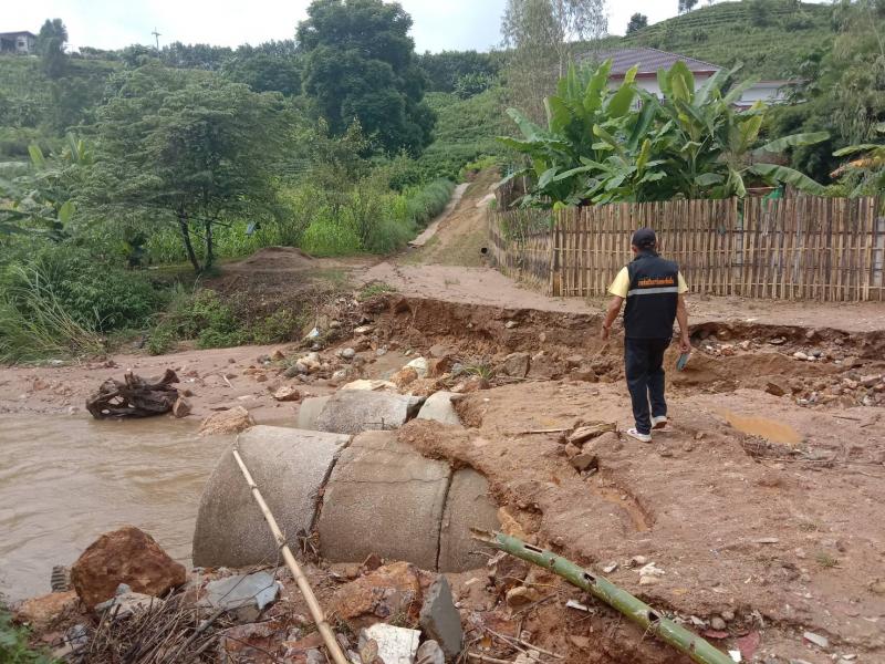 รองนายกสมชาย ดวงติ๊บ ออกสำรวจกำแพงถล่ม (หมู่ที่ 13) บ้านต้นม่วง และสำรวจท่อ คสล. ได้รับความเสียหาย (หมู่ที่11) บ้านมะหินกอง