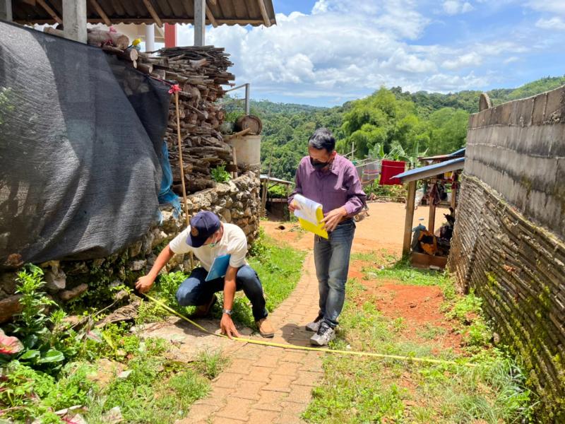 ออกสำรวจรางระบายน้ำและวัดพื้นที่ถนนในหมู่บ้านของบ้านเเม่สะเเลป หมู่ที่ 19