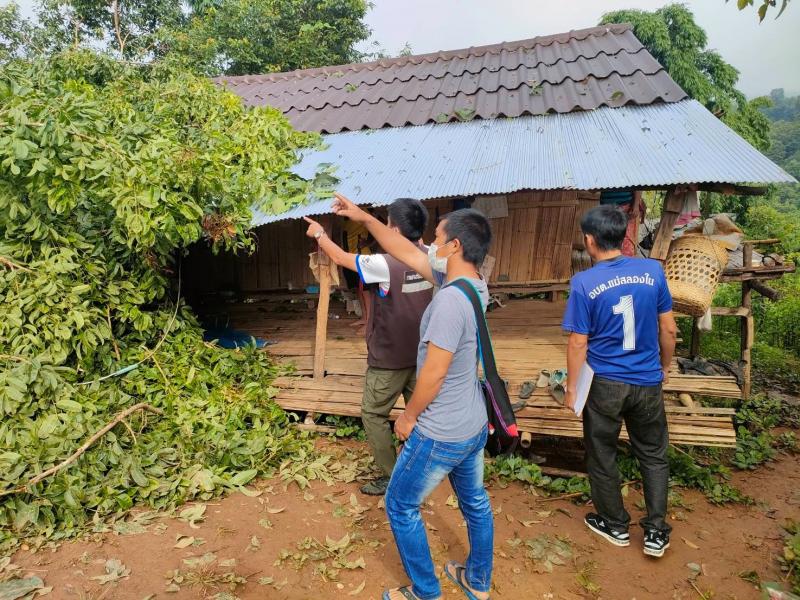 นายสมชาย ดวงติ๊บ รองนายกองค์การบริหารส่วนตำบลแม่สลองใน พร้อมด้วยทีมงานป้องกันและบรรเทาสาธารณภัย อบต.แม่สลองใน ได้ลงพื้นที่เพื่อสำรวจความเสียหายผู้ประสบภัยวาตภัยบ้านแม่แสลปและบ้านพะน้อย