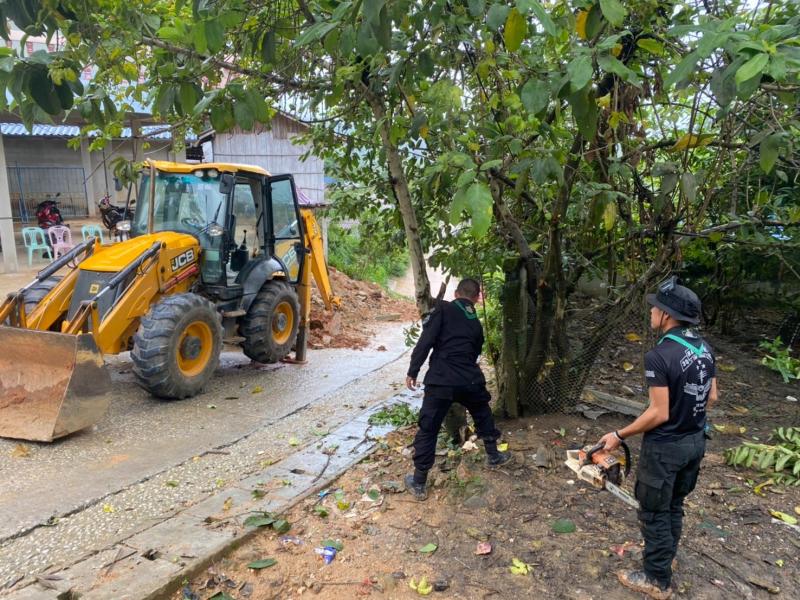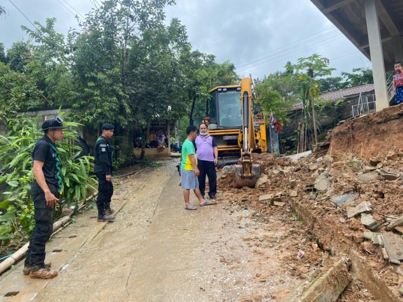 นายสมชาย ดวงติ๊บ รองนายกองค์การบริหารส่วนตำบลแม่สลองใน พร้อมด้วยเจ้าหน้าที่ป้องกันและบรรเทาสาธารณภัยออกพื้นที่ บ้านสันมะเค็ด ม.23