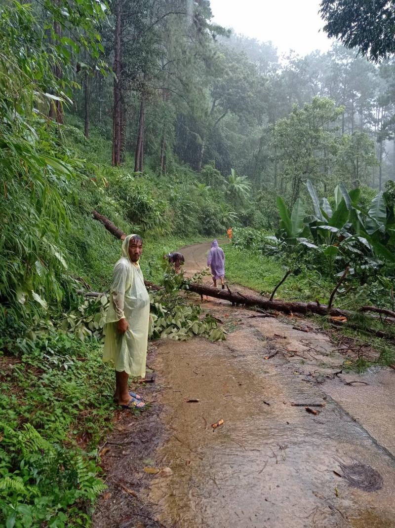 ท่านนายกปิยะเดช เชิงพิทักษ์กุล มอบหมายให้เจ้าหน้าที่นำรถ JCB ดันต้นไม้และเสาไฟฟ้าล้มทับถนน บ้านห้วยหมาก