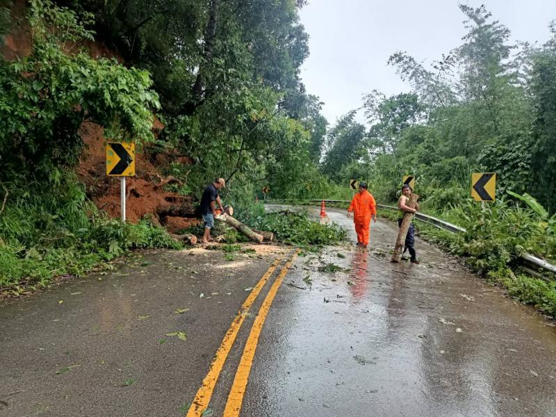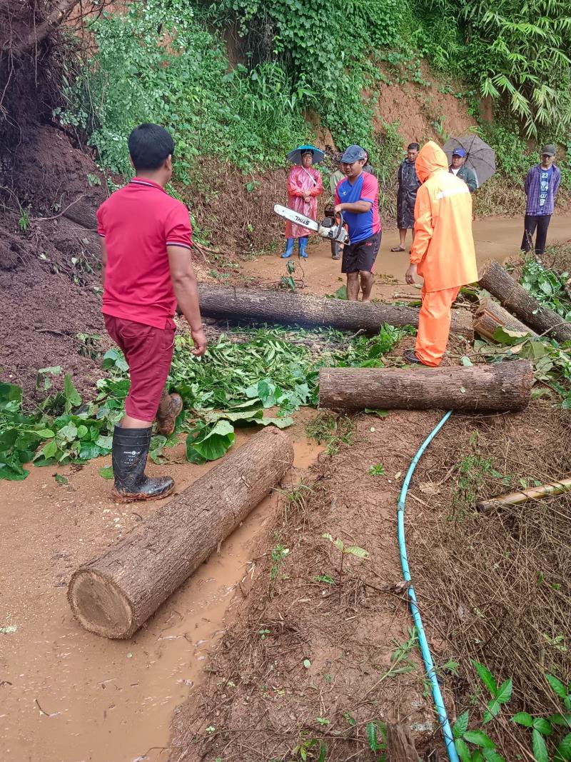 ประมวลภาพผลกระทบ " พายุโซนร้อนมู่หลาน " ในเขตพื้นที่แม่สลองใน กรมอุตุนิยมวิทยา ออกประกาศฉบับ 2 เตือนพายุดีเปรสชันทวีกำลังแรงเป็นพายุโซนร้อน มู่หลาน คาดขึ้นฝั่งเวียดนามตอนบนวันที่ 11 ส.ค. ส่งผล กระทบหลายจังหวัดทั่วไทยมีฝนตกหนักถึงหนักมากระหว่างวันที่ 11-13 ส.ค. 2565 ที่ผ่านมา ซึ่งเขตพื้นที่ตำบลแม่สลองในได้รับผลกระทบเช่นเดียวกัน มีเหตุเสาไฟฟ้า ต้นไม้ใหญ่ กอไผ่และดินโคลนถล่มลงมาทับถนนในเขตพื้นที่ตำบลแม่สลองในหลายแห่งทำให้การสัญจรไปมาถูกตัดขาด ทางผู้บริหารเร่งสั่งการให้เจ้าหน้าที่ป้องกันและบรรเทาสาธารณภัยนำเลื่อยยนต์ออกตัดต้นไม้ใหญ่และเจ้าหน้าที่นำรถไถออกเคลียร์พื้นที่เพื่อเปิดทางให้ประชาชนสัญจรไปมาได้ #งานป้องกันและบรรเทาสาธารณภัยองค์การบริหารส่วนตำบลแม่สลองใน