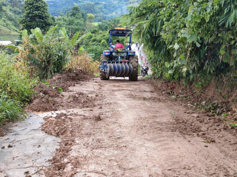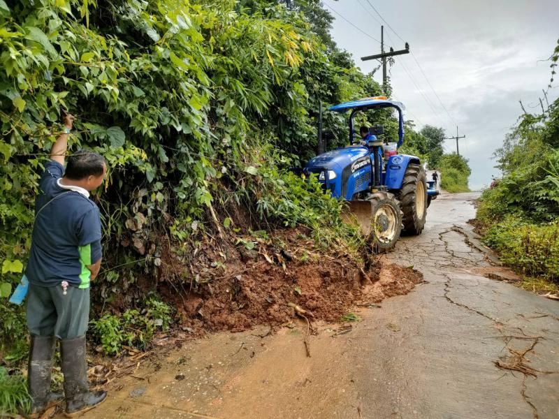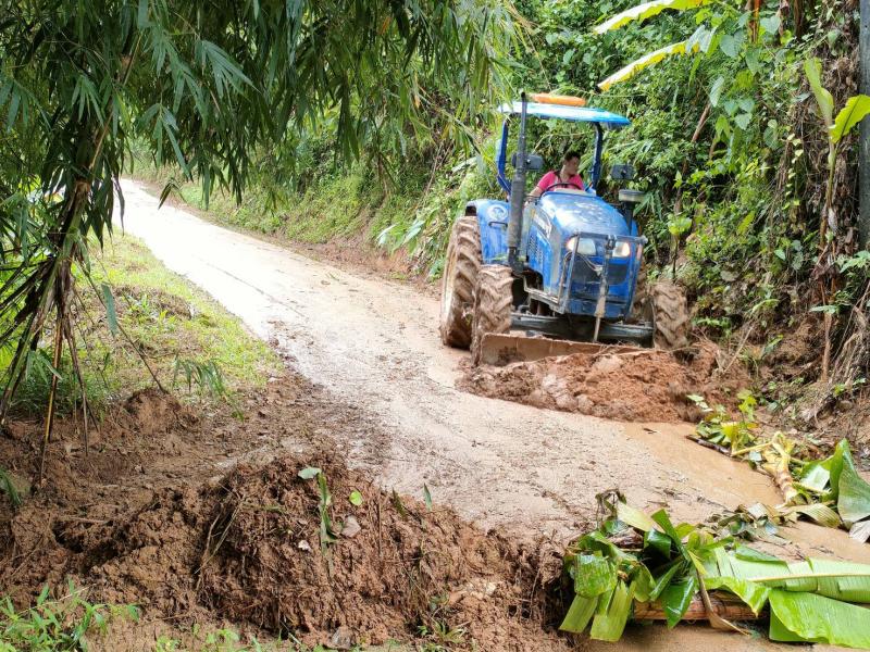 ทีมงานป้องกันและบรรเทาสาธารณภัยองค์การบริหารส่วนตำบลแม่สลองใน พร้อมด้วยเจ้าหน้าที่และรถไถ ออกพื้นที่เพื่อปรับดินสไลด์บริเวณบ้านเล่าลิ่ว