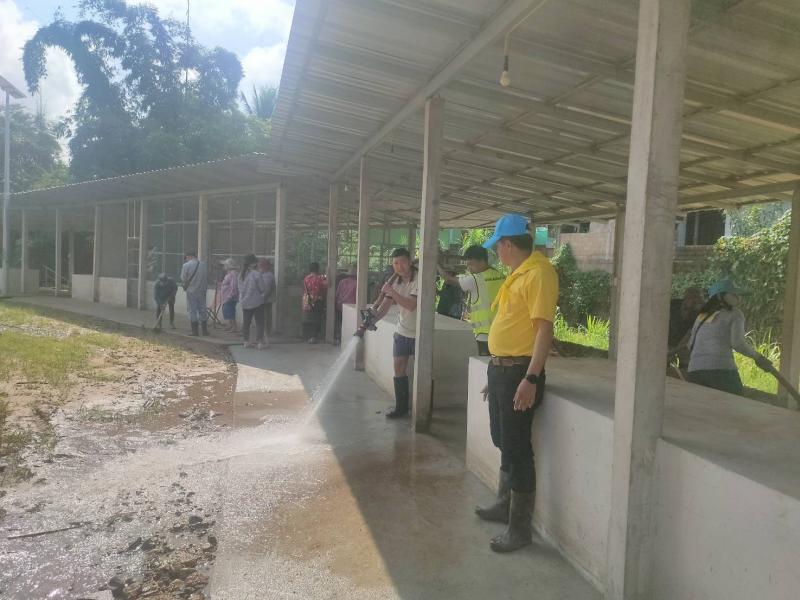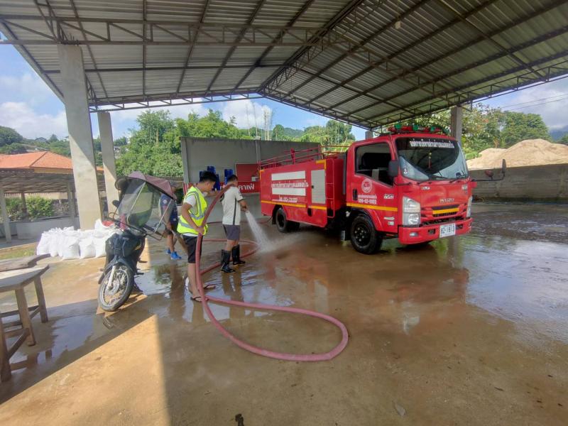 ทีมงานป้องกันและบรรเทาสาธารณภัยฯ ได้รับหมอบหมายงานจากท่านรองนายกสมชาย ดวงติ๊บ ให้นำรถบรรทุกน้ำออกบริการทำความสะอาดตลาดประชารัฐพร้อมกับชาวบ้านบ้านหินแตกใน หมู่ที่ 1