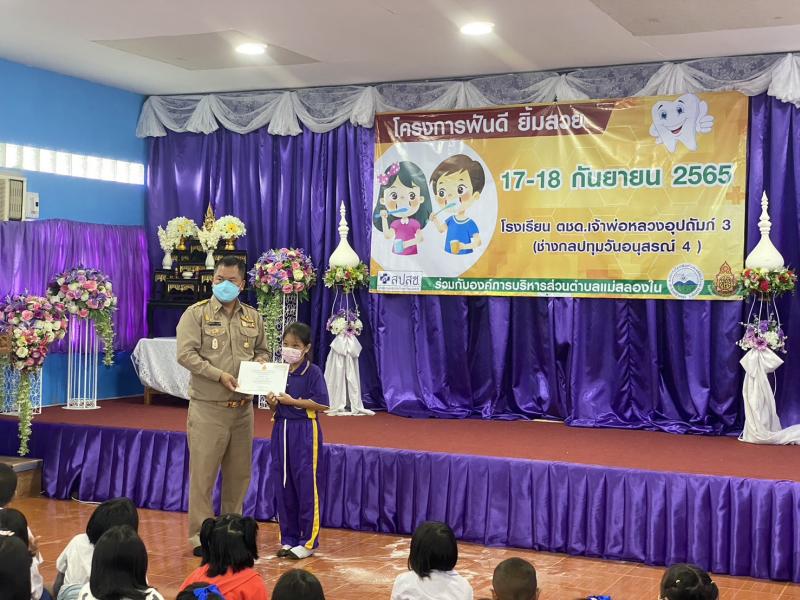 วันจันทร์ ที่ 3 ตุลาคม 2565 นายปิยะเดช เชิงพิทักษ์กุล นายกองค์การบริหารส่วนตำบลแม่สลองใน เป็นประธานเปิดโครงการฟันดี ยิ้มสวย พร้อมมอบเกียรติบัตร ให้กับนักเรียนโรงเรียนตำรวจตะเวนชายแดนเจ้าพ่อหลวงอุปถัมภ์ 3