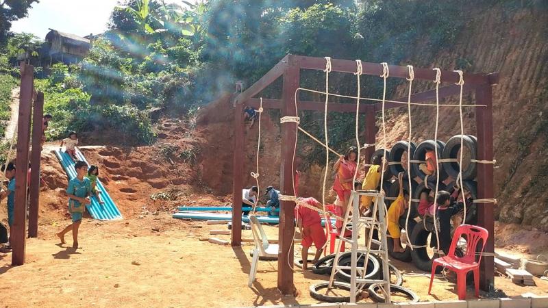 ร่วมกันก่อสร้างเครื่องเล่นสนามสร้างปัญญา ให้เด็กๆและเยาวชน ณ หมู่ที่ 11 บ้านมะหินกอง