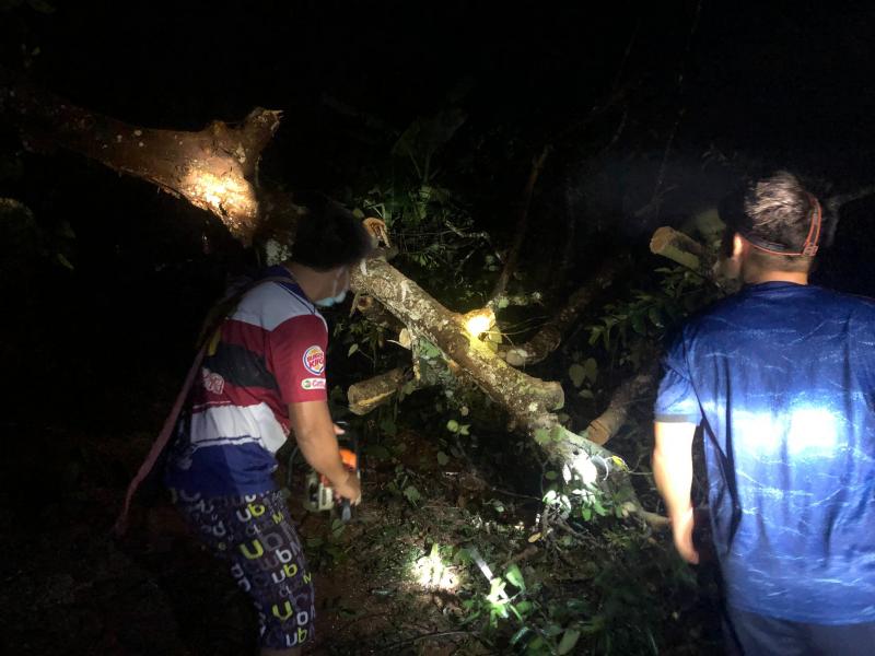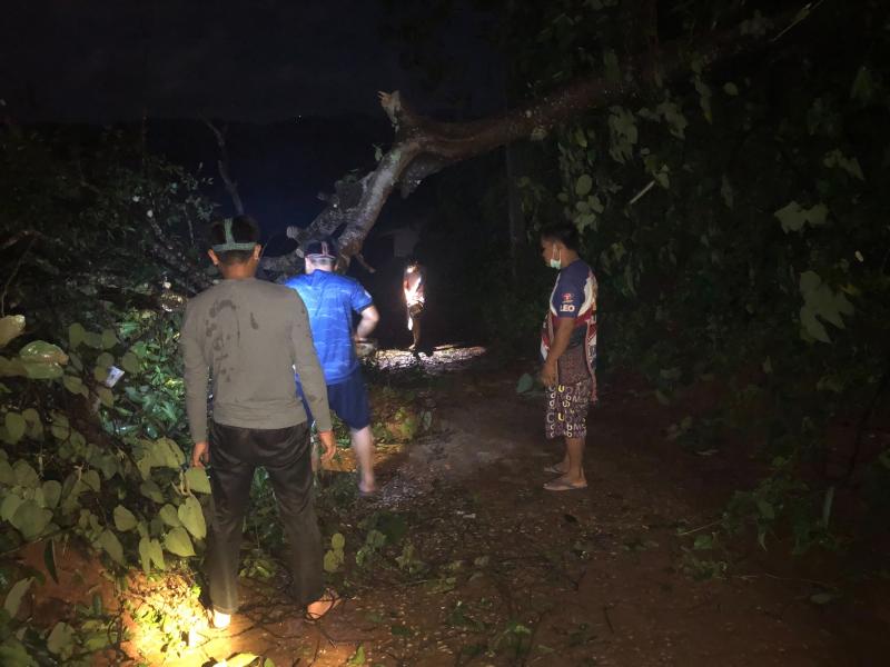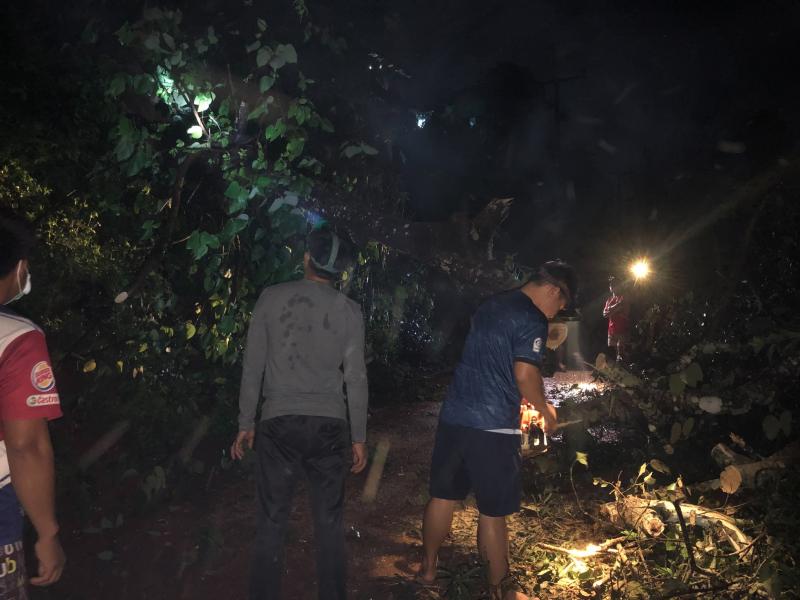 ทีมงานป้องกันและบรรเทาสาธารณภัย ออกปฏิบัติหน้าที่ตัดต้นไม้ล้มขวางถนนทางขึ้นหมู่บ้านอาแหละ หมู่ที่ 15