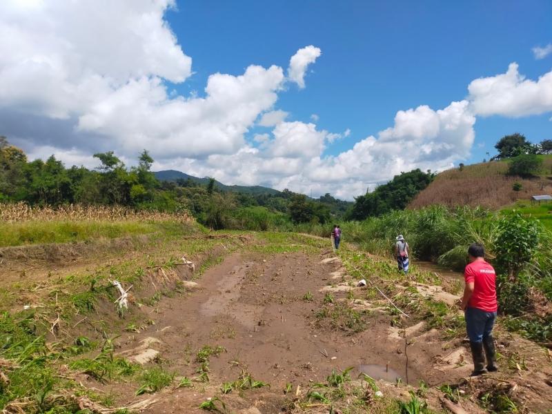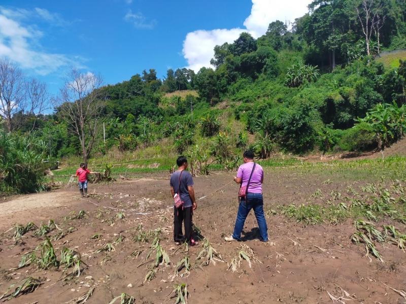 งานป้องกันและบรรเทาสาธารณภัยและงานส่งเสริมการเกษตรออกสำรวจพื้นที่ประสบภัยพิบัติด้านพืช บ้านเล่าลิ่ว หมู่ที่ 14