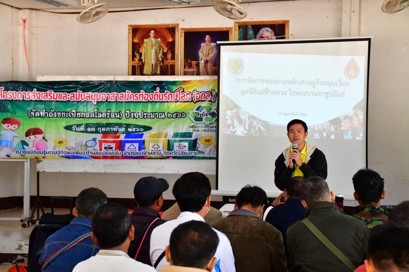 วันที่ 13 กุมภาพันธ์ 2566 ฝ่ายบริหารงานสาธารณสุข สำนักปลัด องค์การบริหารส่วนตำบลแม่สลองใน ได้จัดทำโครงการส่งเสริมและสนับสนุนอาสาสมัครท้องถิ่นรักษ์โลก (อถล.) จัดทำถังขยะเปียกลดโลกร้อน ปีงบประมาณ 2566 ณ หอประชุมบ้านห้วยมุ หมู่ที่ 5 ตำบลแม่สลองใน กิจกรรมที่ดำเนินการมีดังต่อไปนี้ -รับสมัคร “อาสาสมัครท้องถิ่นรักษ์โลก” -อบรมการบริหารจัดการขยะและวิธีการคัดแยกขยะที่ต้นทาง -ส่งเสริมการลด การคัดแยกขยะมูลฝอย ตั้งแต่ต้นทาง (ครัวเรือน) ตามหลัก 3 Rs (Reduce) การใช้ซ้ำ (Reuse) และการนำกลับมาใช้ใหม่ (Recycle) -อบรมการทำถังขยะเปียกลกโลกร้อน -อบรมการทำน้ำหมักชีวภาพจากขยะอินทรีย์ครัวเรือน และการทำสารป้องกันแมลงศัตรูพืช -จัดทำบันทึกข้อตกลง MOU ระหว่าง องค์การบริหารส่วนตำบลแม่สลองใน ร่วมกับ กำนันตำบลแม่สลองใน/ผู้ใหญ่บ้านหมู่ที่ 1 – 27 และ อถล. หมู่ที่ 1 – 27 เรื่องการจัดการขยะมูลฝอยชุมชน “จังหวัดสะอาด” ปีงบประมาณ 2566 -แจกป้ายประชาสัมพันธ์การคัดแยกขยะ/การทำถังขยะเปียกลดโลกร้อน มอบหมู่บ้านละ 1 ป้าย