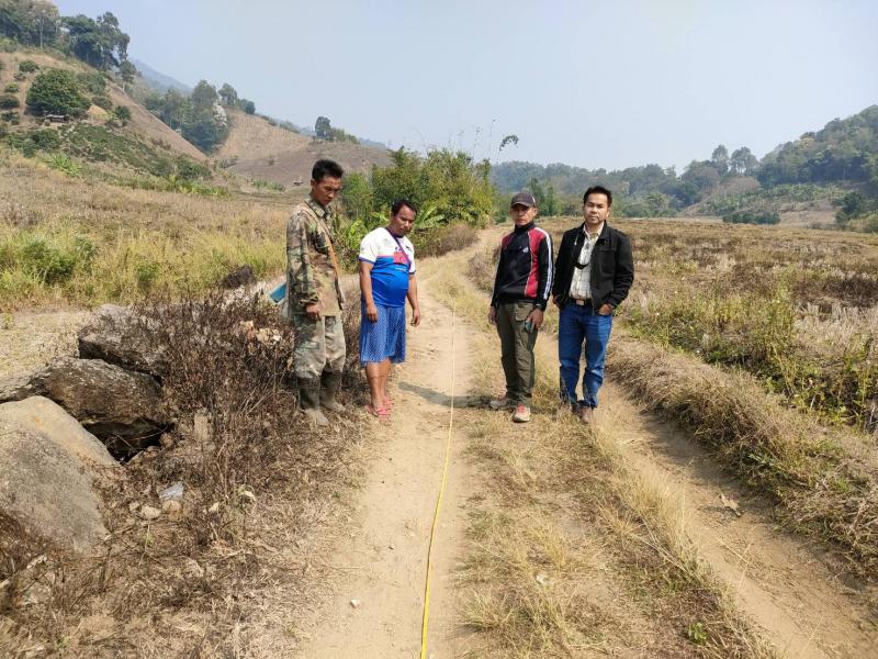สำรวจพื้นที่ เพื่อก่อสร้างถนน ร่องระบายน้ำ และรั้วศูนย์พัฒนาเด็กเล็ก