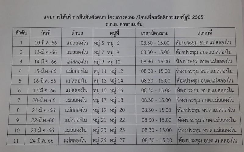 แผนการให้บริการยืนยันลงทะเบียนบัตรสวัสดิการแห่งรัฐ