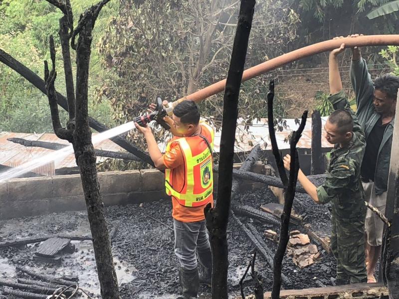 ทีมงานป้องกันออกเหตุดับเพลิงไหม้บ้าน